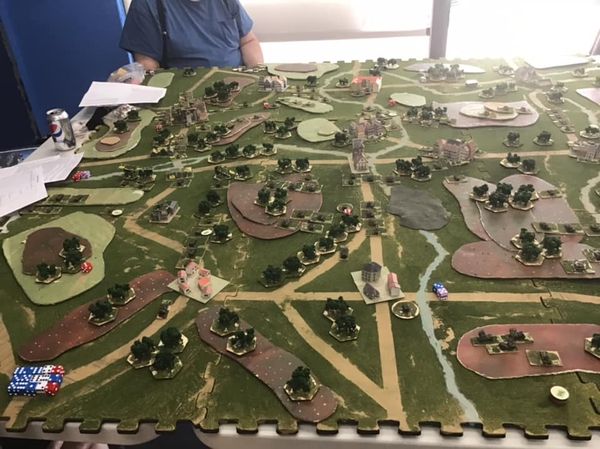 The game matched the first divisions of both nations in a meeting engagement and lasted a full day of six turns. Each turn is two hours long. The FUBV was starting to gain an advantage by the end of the day. The table was six feet by six feet or 18km by 18km at the game scale of 1cm - 100m.